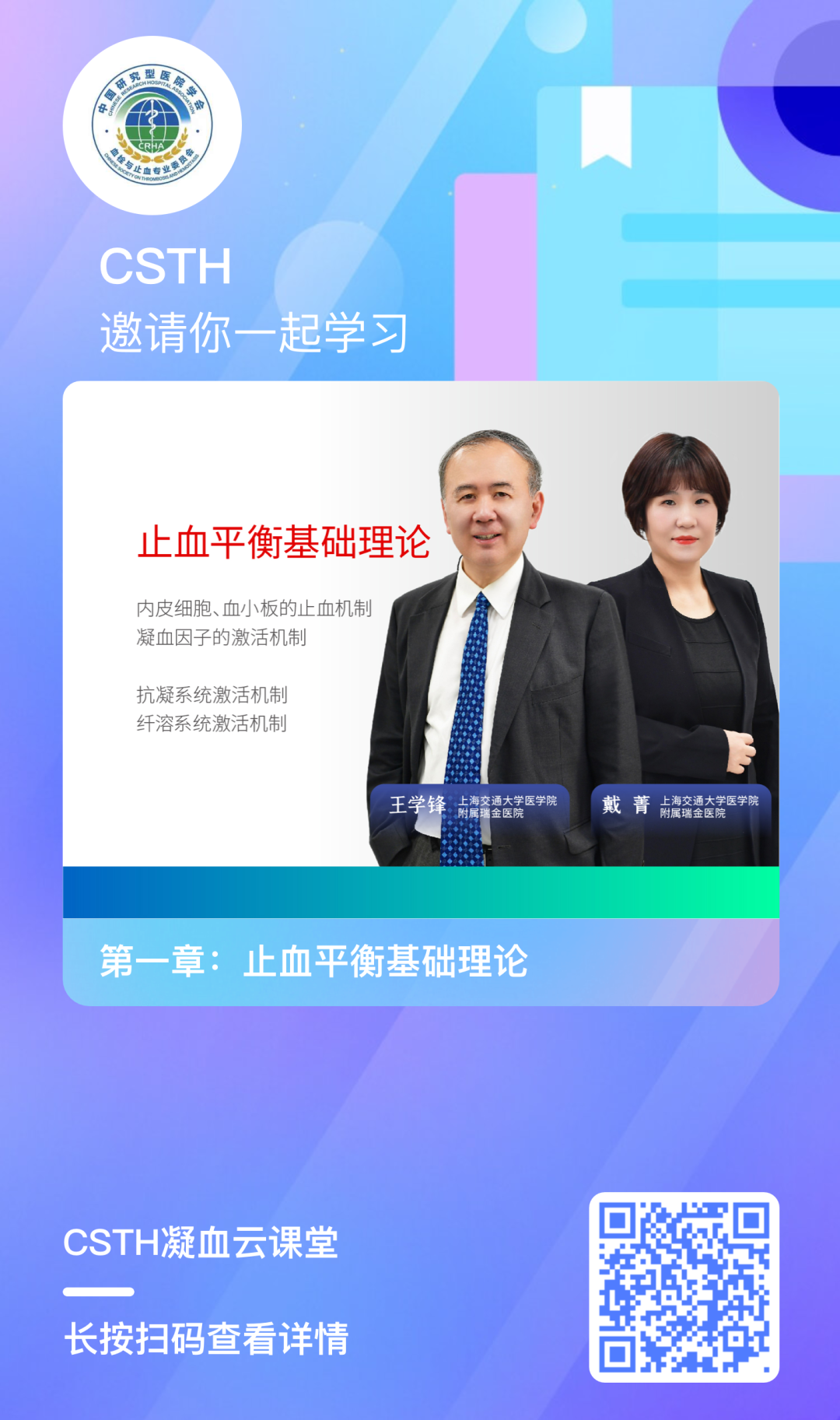 凝血云課堂是中國研究型醫(yī)院學(xué)會血栓與止血專業(yè)委員會打造的學(xué)習(xí)平臺。CSTH凝血云課堂集結(jié)了國內(nèi)眾多優(yōu)秀的凝血專家學(xué)者,系統(tǒng)地針對血栓與止血實驗室相關(guān)檢測基礎(chǔ)理論、指標、指南共識、儀器操作、案例等等各方面為大家傳道解惑,利用網(wǎng)課開設(shè)一系列專業(yè)系統(tǒng)的凝血繼續(xù)教育課程,對大家完全免費,幫助大家系統(tǒng)的了解和學(xué)習(xí)這門學(xué)科。