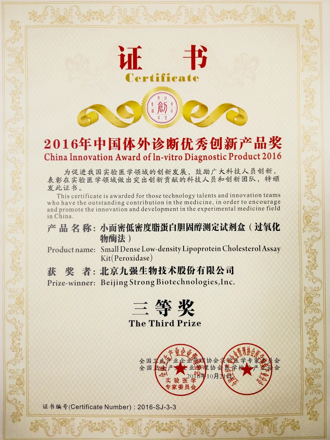 5. 獲得2016年中國(guó)體外診斷試劑創(chuàng)新產(chǎn)品獎(jiǎng)。