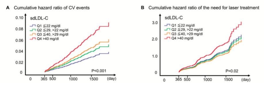 sdLDL-C水平對(duì)心血管事件的累積危險(xiǎn)比和糖尿病視網(wǎng)膜病變激光治療的必要性