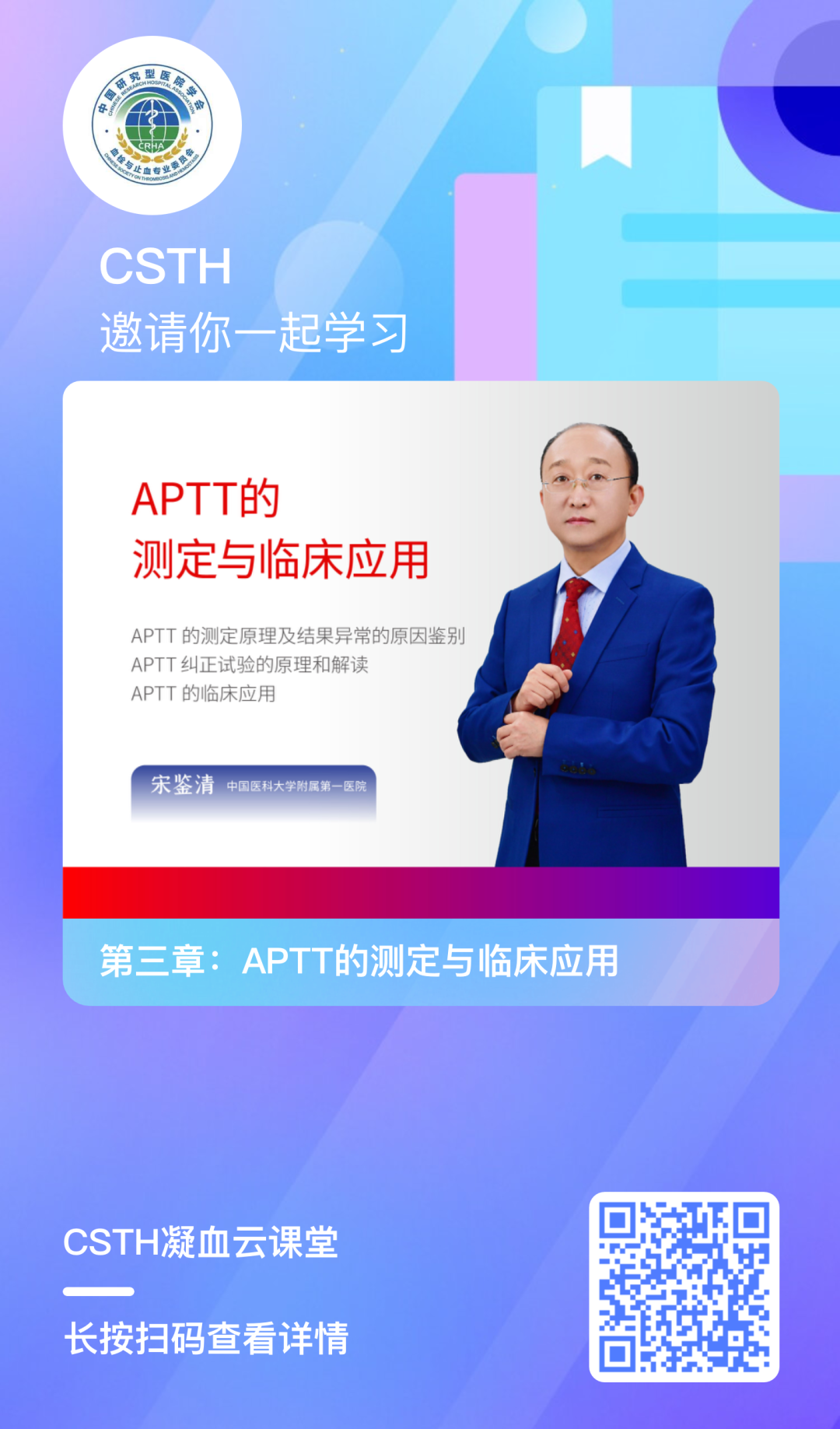 凝血云課堂是中國研究型醫(yī)院學(xué)會血栓與止血專業(yè)委員會打造的學(xué)習(xí)平臺。CSTH凝血云課堂集結(jié)了國內(nèi)眾多優(yōu)秀的凝血專家學(xué)者,系統(tǒng)地針對血栓與止血實驗室相關(guān)檢測基礎(chǔ)理論、指標(biāo)、指南共識、儀器操作、案例等等各方面為大家傳道解惑,利用網(wǎng)課開設(shè)一系列專業(yè)系統(tǒng)的凝血繼續(xù)教育課程,對大家完全免費,幫助大家系統(tǒng)的了解和學(xué)習(xí)這門學(xué)科。