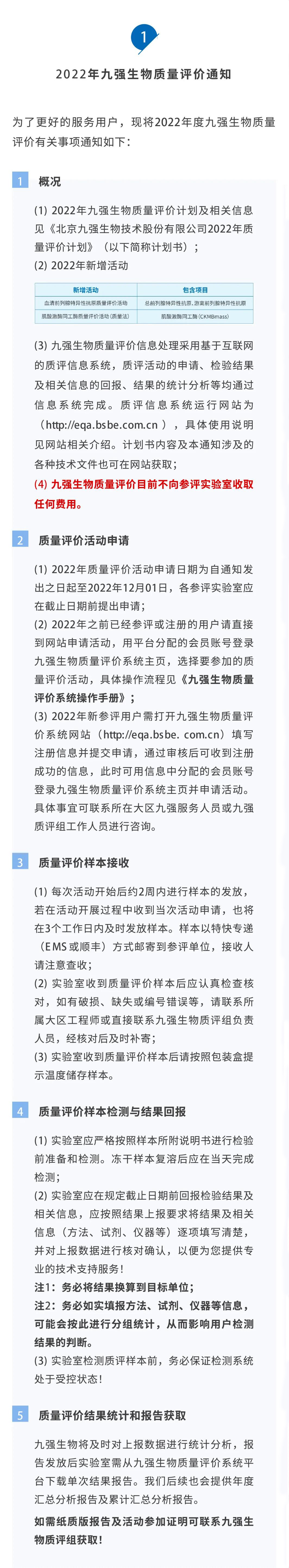 北京九強(qiáng)生物技術(shù)股份有限公司2022年質(zhì)量評(píng)價(jià)計(jì)劃