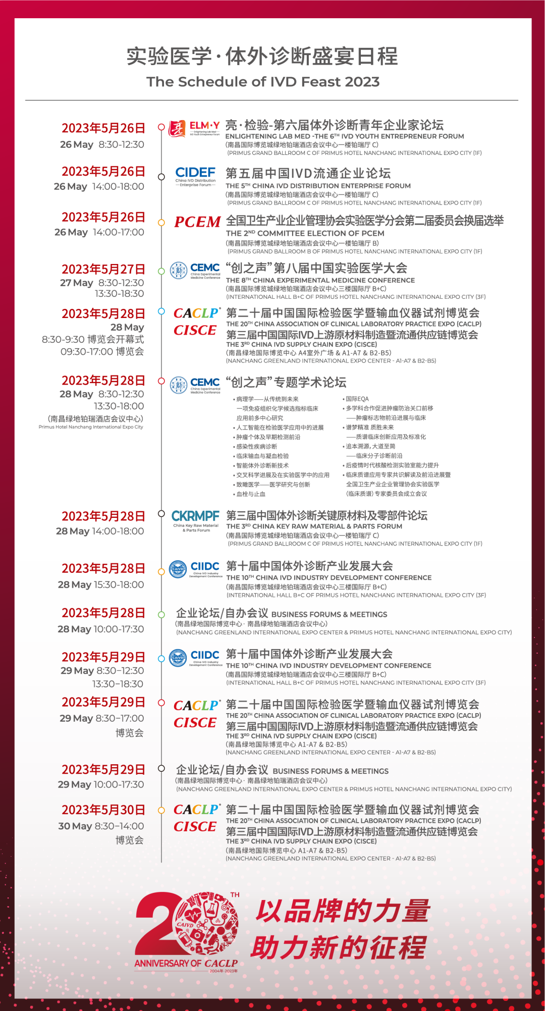 第二十屆中國國際檢驗醫(yī)學(xué)暨輸血儀器試劑博覽會(CACLP),第三屆中國國際IVD上游原材料制造暨流通供應(yīng)鏈博覽會(CISCE)將于2023年5月28日-30日在南昌綠地國際博覽中心舉行。