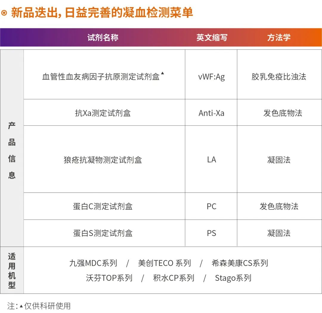 九強生物是中國領(lǐng)先的臨床體外診斷產(chǎn)品與服務(wù)供應(yīng)商之一,目前擁有自主研發(fā)的全自動凝血檢測分析儀MDC7500和MDC3500以及德國原裝進口的Coatron5000、Coatron3000和Coatron1800,專業(yè)配套的凝血檢測試劑在滿足自有檢測系統(tǒng)的同時也能完美匹配主流血凝檢測系統(tǒng),滿足不同客戶的需求,為臨床提供全面的血栓與止血實驗室解決方案。