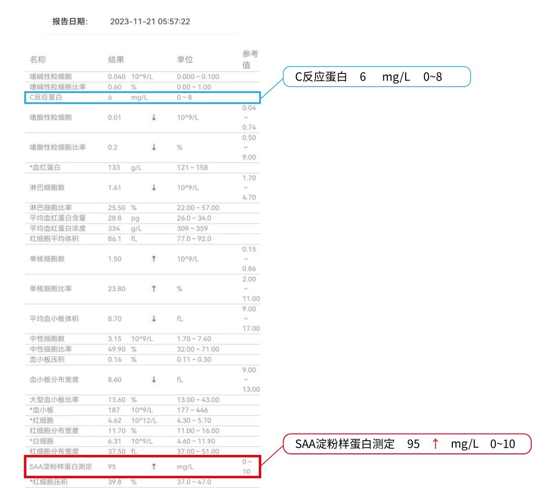 在常見的血液檢測指標中,除常規(guī)的血常規(guī)、C反應蛋白(CRP)檢測外,另一炎癥指標——血清淀粉樣蛋白A(SAA)的檢測在該類疾病的診療中敏感性備受關(guān)注。