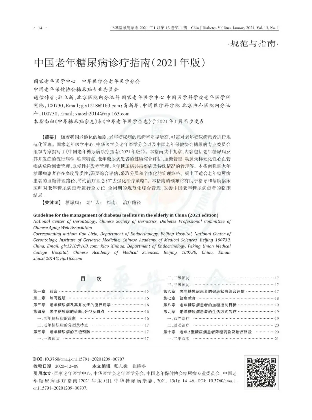 中國老年糖尿病診療指南(2021年版)