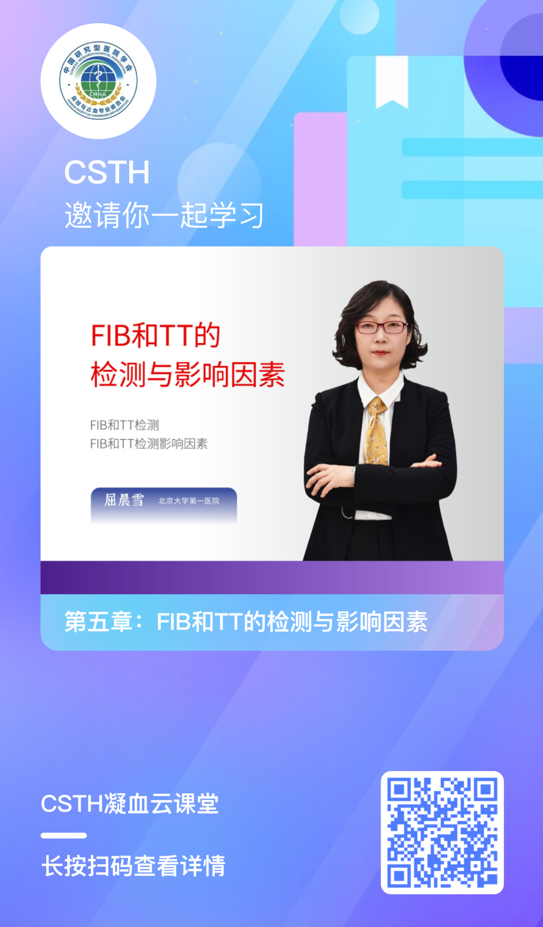 凝血云課堂是中國研究型醫(yī)院學會血栓與止血專業(yè)委員會打造的學習平臺。CSTH凝血云課堂集結(jié)了國內(nèi)眾多優(yōu)秀的凝血專家學者,系統(tǒng)地針對血栓與止血實驗室相關(guān)檢測基礎(chǔ)理論、指標、指南共識、儀器操作、案例等等各方面為大家傳道解惑,利用網(wǎng)課開設(shè)一系列專業(yè)系統(tǒng)的凝血繼續(xù)教育課程,對大家完全免費,幫助大家系統(tǒng)的了解和學習這門學科。